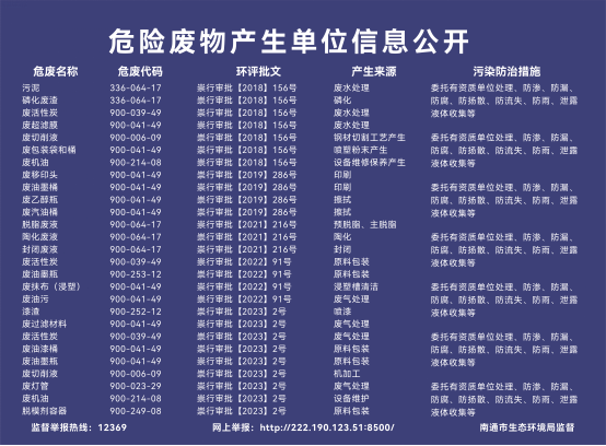 危險廢物污染環(huán)境防治信息公示