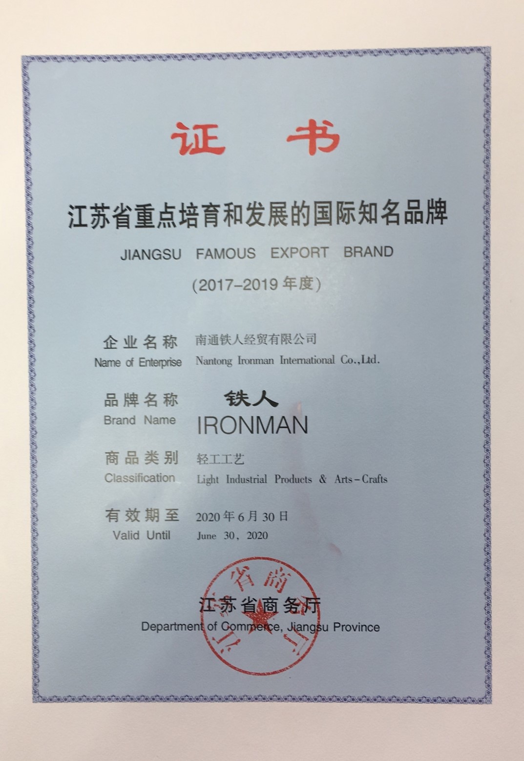 | 2018 | 江蘇省重點培育和發(fā)展的國際知名品牌 | 江蘇省商務廳 |